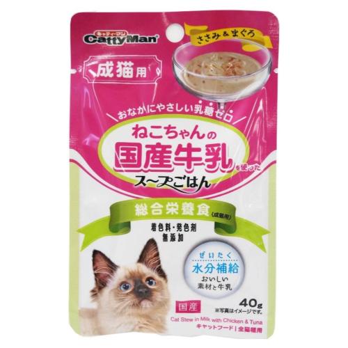猫ちゃんの国産牛乳を使ったスープごはん ささみ まぐろ成猫用 40g pet box オン